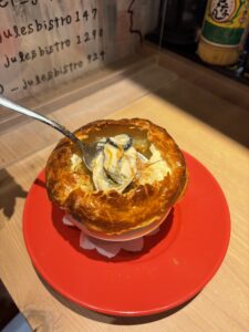 寒ーい夜に牡蠣と魚介のパイ包みスープで冷えた身体を暖めてください♪