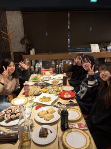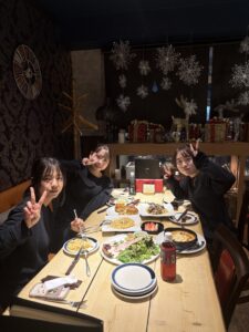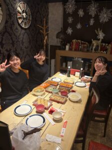 クリスマスディナーの後は残り物でいつもより豪華なまかないでささやかなスタッフパーティです(^。^)
