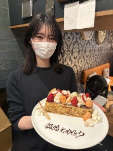 これまで、たくさんのケーキのご注文を頂きいろいろ試行錯誤しながらケーキを作っていた彼女ですが、3月には東京の厳しそうなお店へ旅立つのでケーキのご注文は3月上旬までになると思います♪